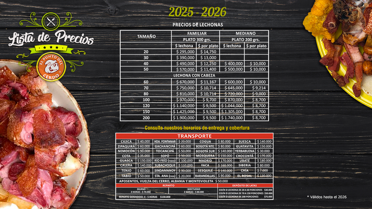 Somos una empresa creada por Ingenieros de alimentos que desde el año 2000 ofrece a todos nuestros clientes la más exquisita Lechona Tolimense, deliciosas picadas, costillas de cerdo, chorizos ahumados y muchas delicias más.